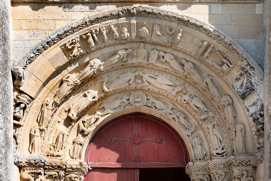 A l’époque romane, cet endroit placé au centre du portail, voire de la façade toute entière, constitue, au même titre que les chapiteaux de la nef et du chœur, le lieu principal où se déploie la sculpture.